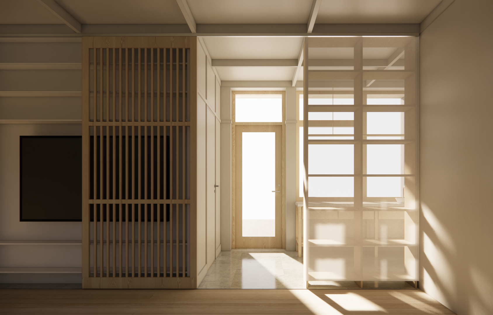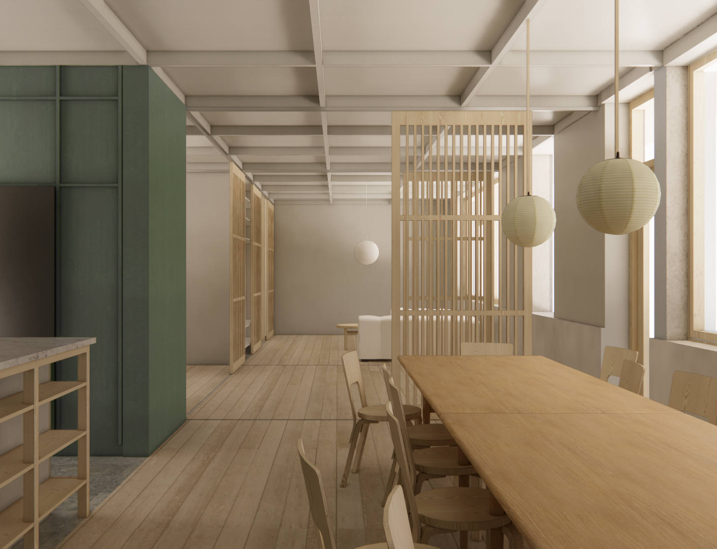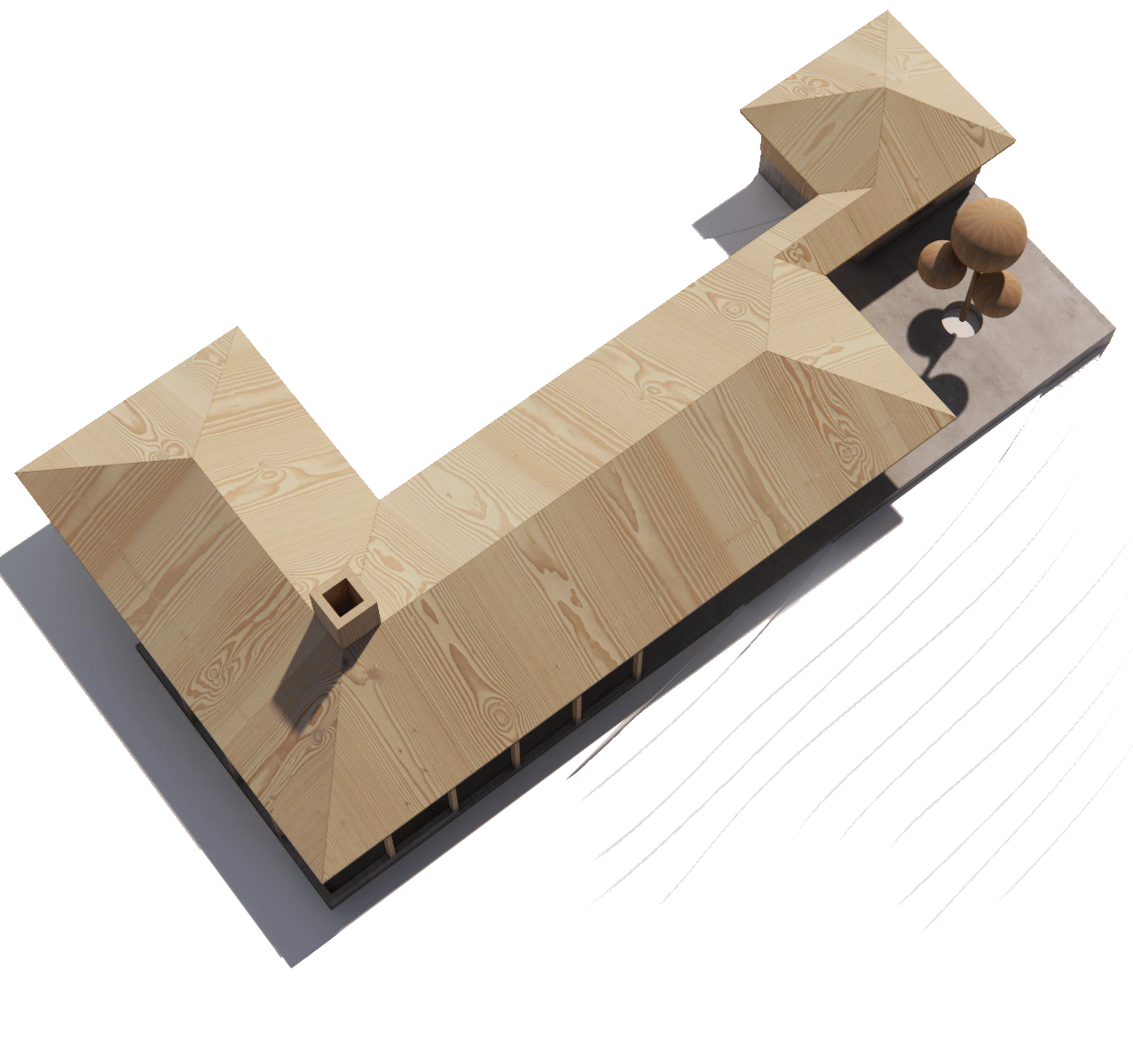 Planlösningen har en funktionell koppling till den lokala byggnadstraditionen, vilket återspeglas i rumsfunktioner såsom en svalare tempererad hall, ett kallskafferi och en stor gemensam sal. Invändiga skjutväggar skapar förutsättningar för att dela in det gemensamma utrymmet i mindre rumsligheter och fungerar samtidigt för att dölja förvaring och mediaenehter.